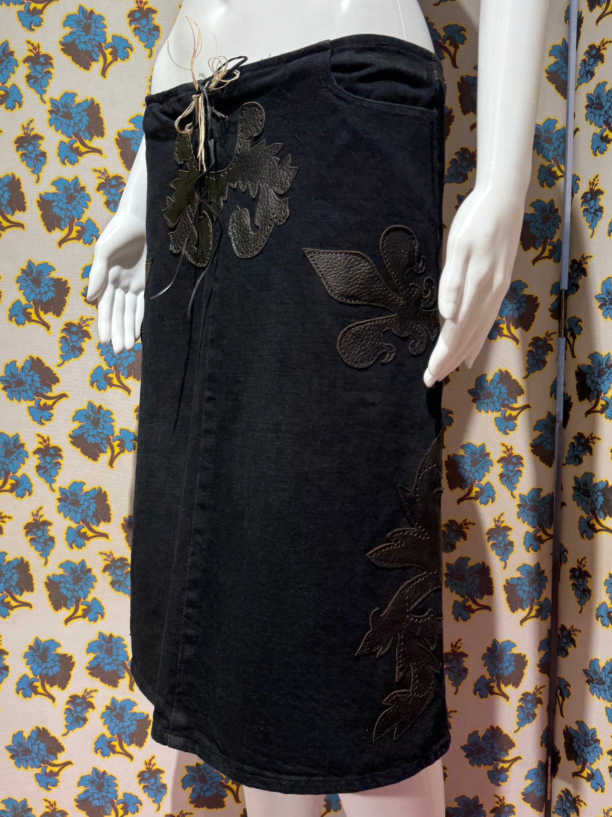 Voyage Denim and Leather Patch Skirt