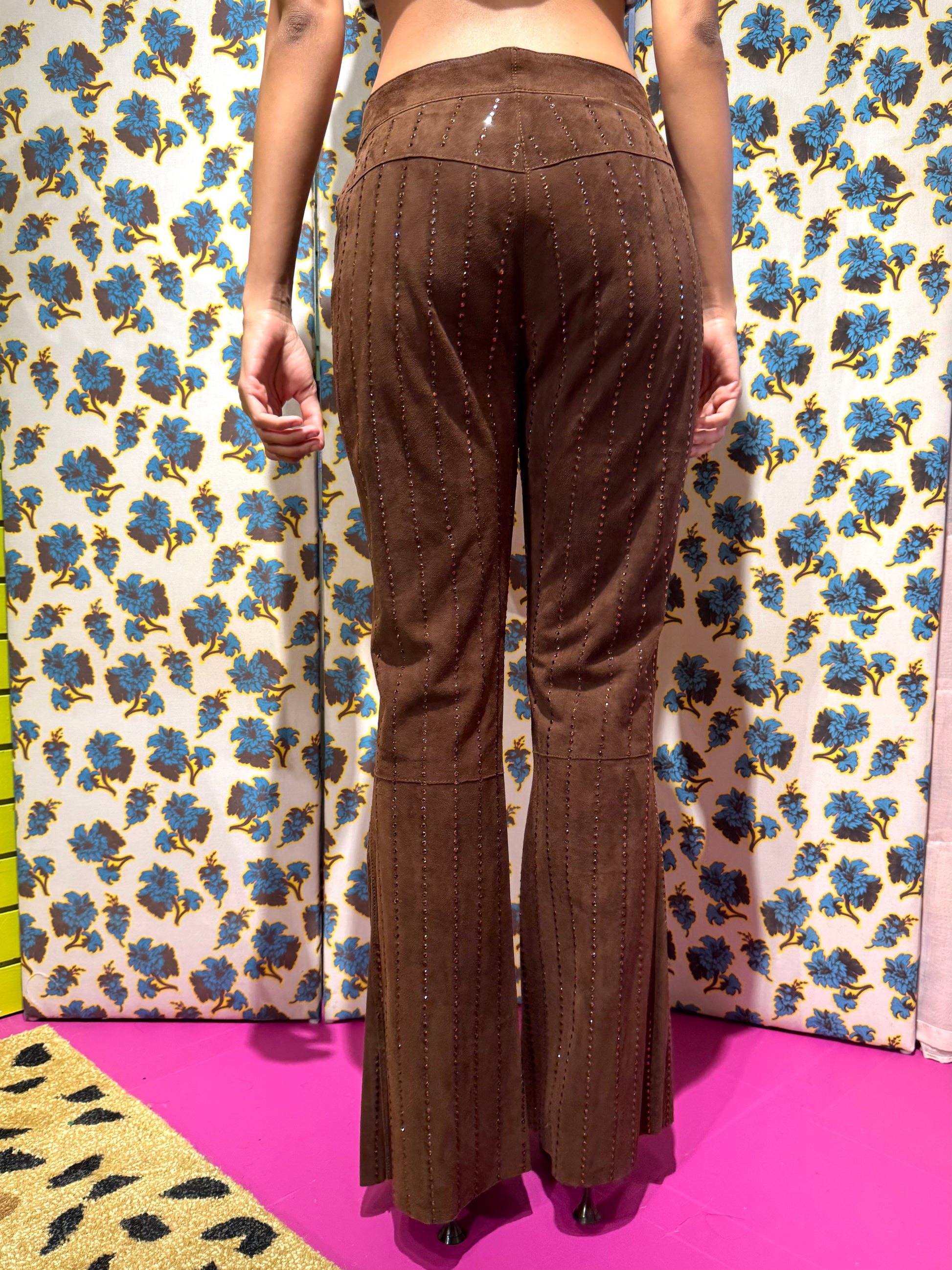 Dolce & Gabbana Fall/Winter 2000 Brown Suede and Swarovski Crystal Pants