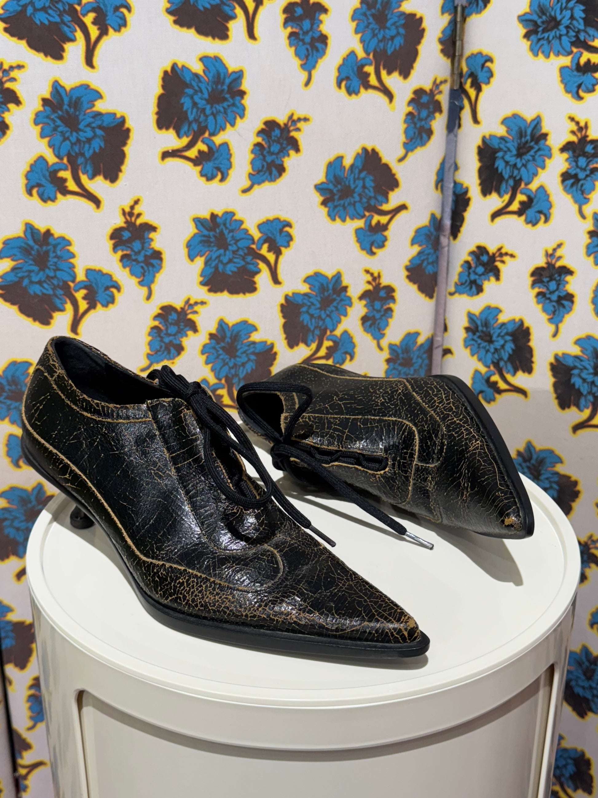Miu Miu F/W 2001 Crackled Leather Lace Up Heels