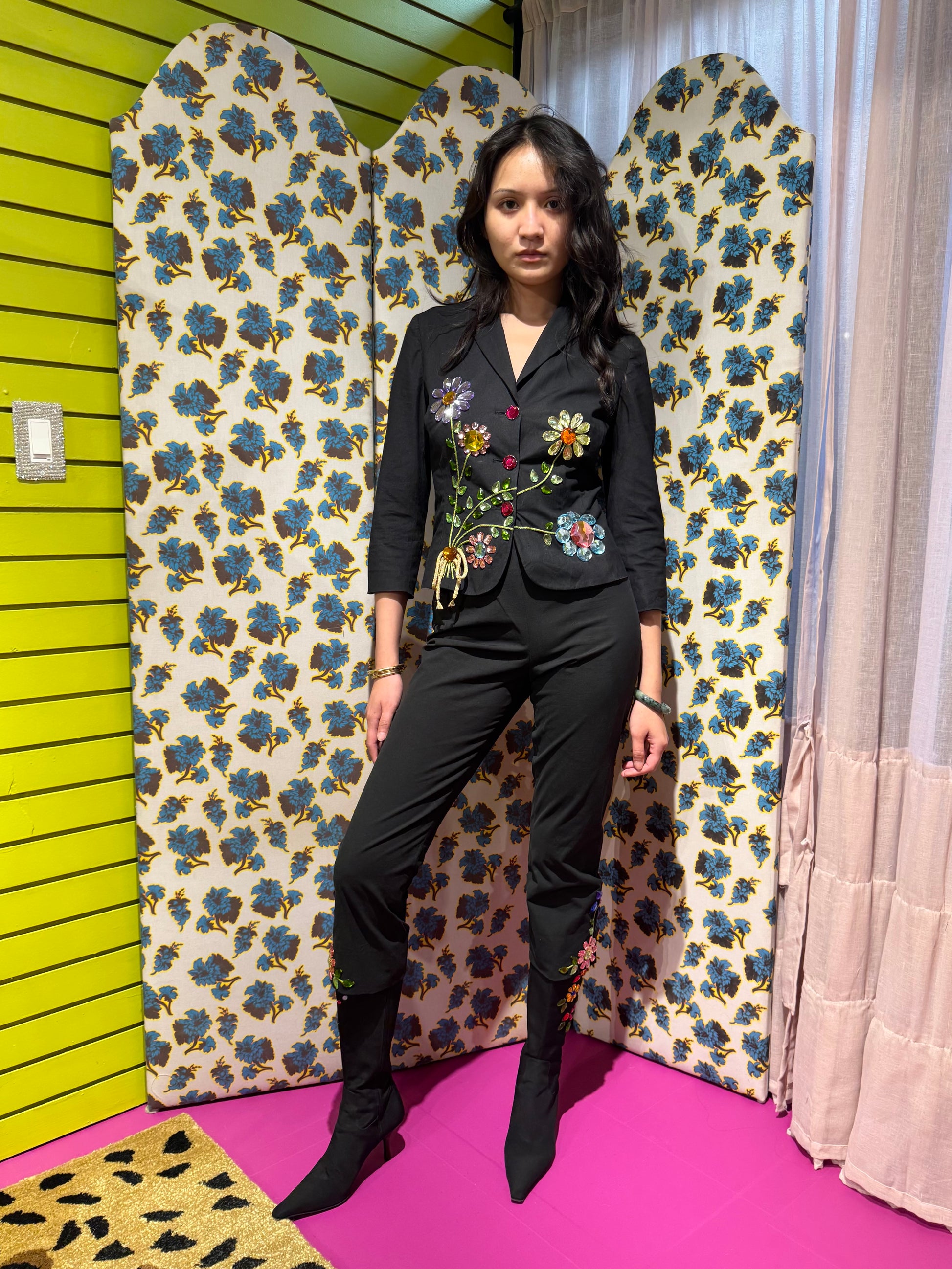 Moschino Cheap & Chic Gem Flower Jacket, Pants, and Boots