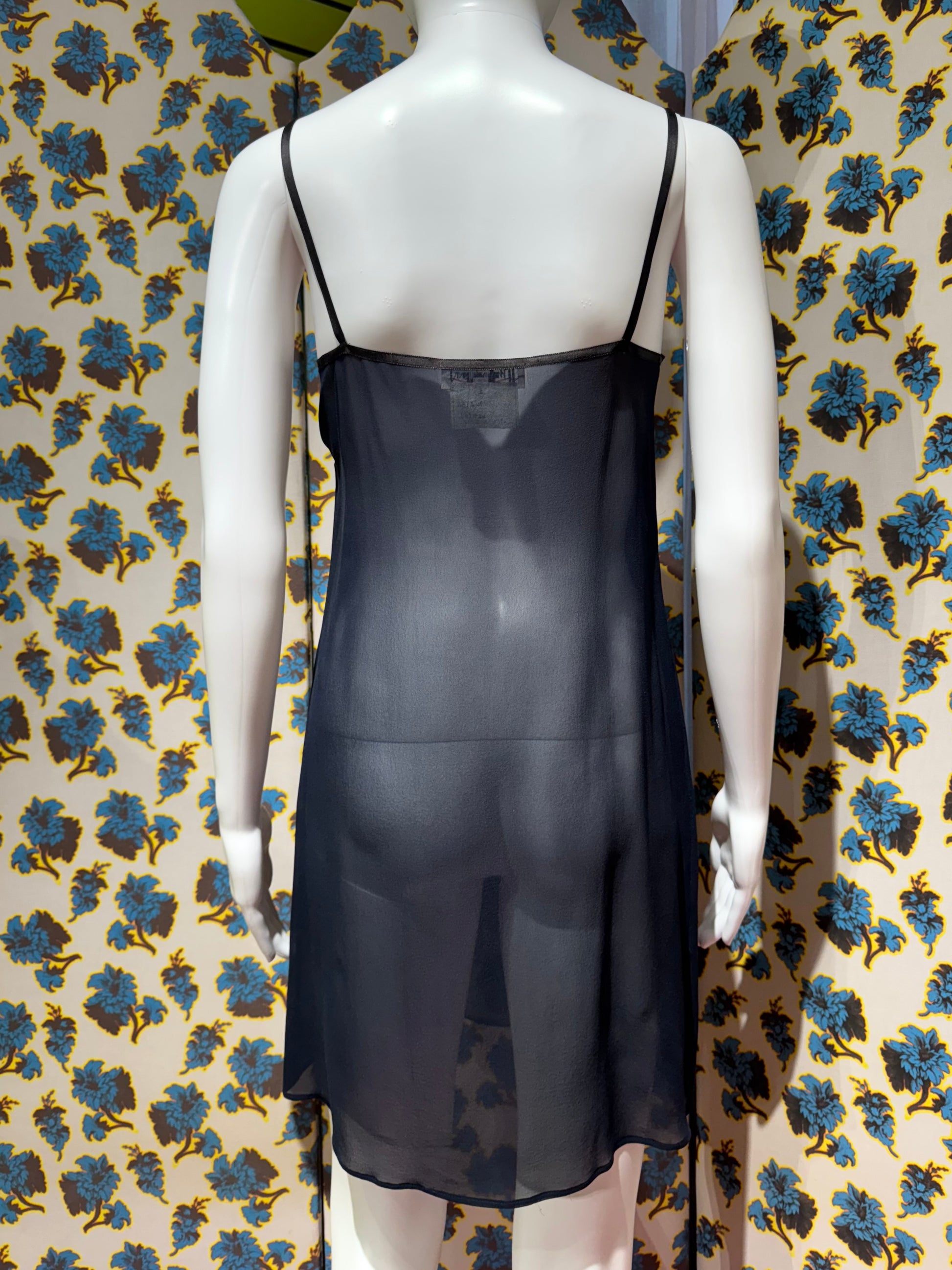 Yves Saint Laurent 1980’s Navy Blue Silk Sheer Slip Dress