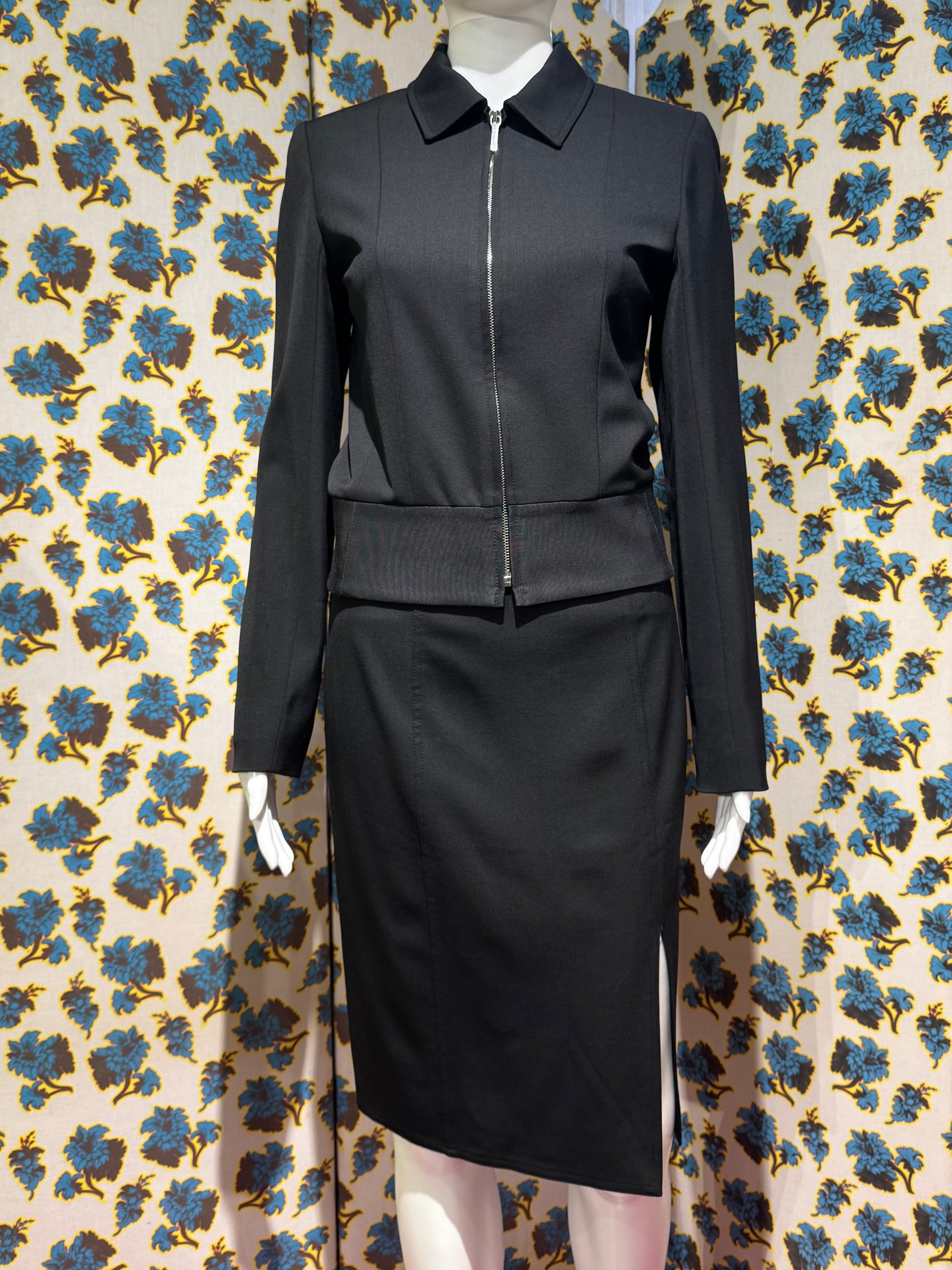 Dior Spring/Summer 2002 Black Skirt and Zip Up Blazer/Jacket Suit