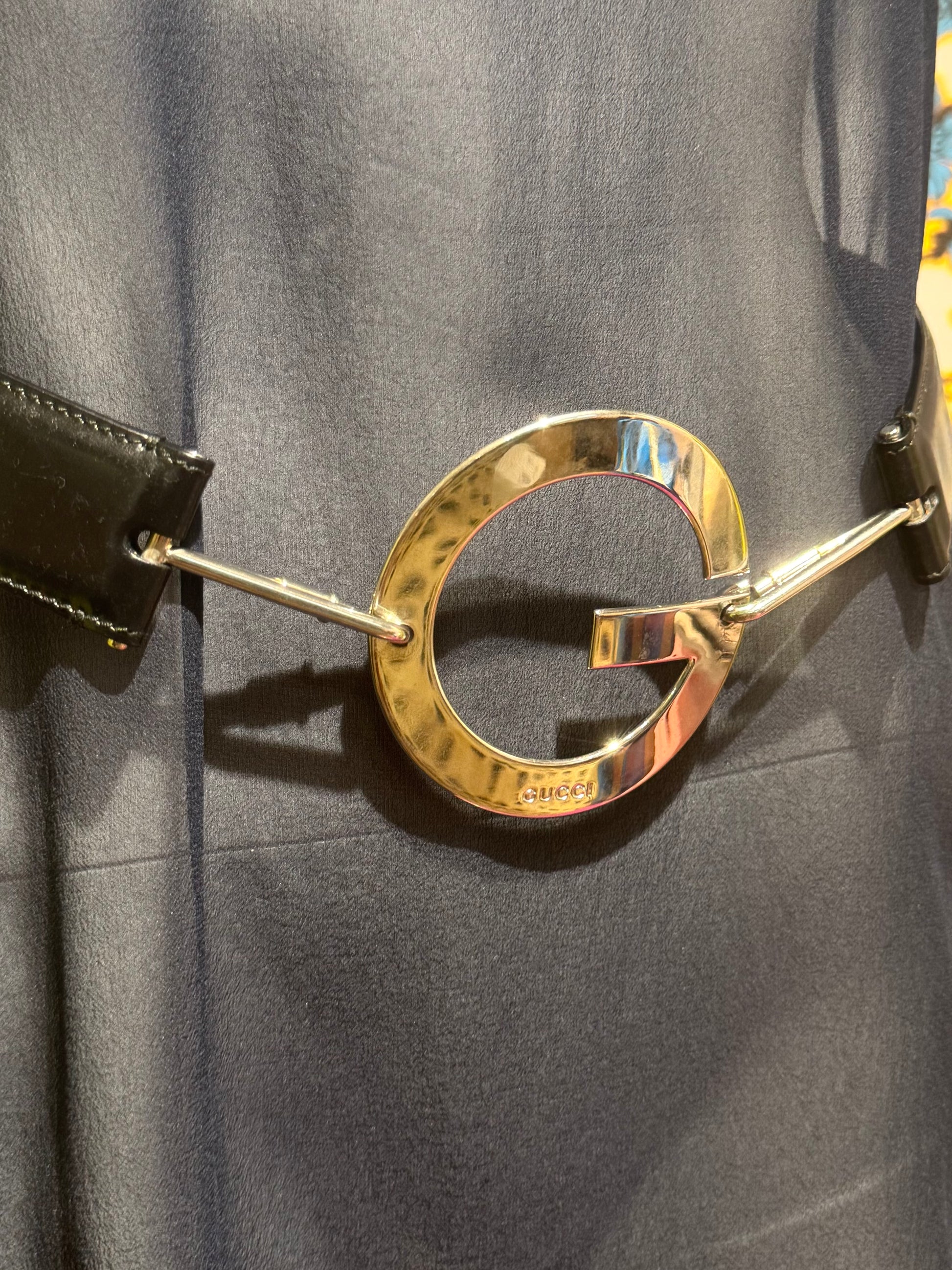 Gucci Spring/Summer 1996 Black Leather Belt with Silver Toned ‘G’